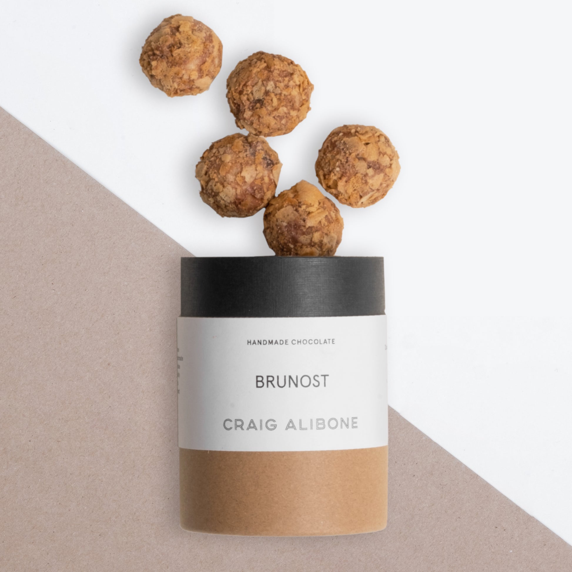 These little beauties have quickly become a favourite. Brunost has a natural caramel taste which works wonderfully in this soft centred truffle. Coated with dark chocolate and a crunchy exterior to finish off.